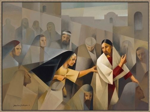 “Como había oído hablar de Jesús, se le acercó por detrás, entre la multitud, y tocó su manto, porque pensaba: «Con sólo tocar su manto quedaré curada».” (Mc 8, 27-28).