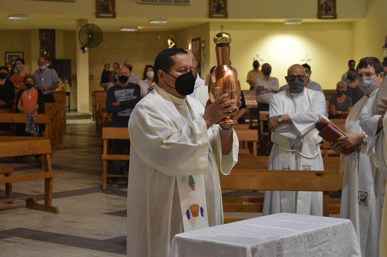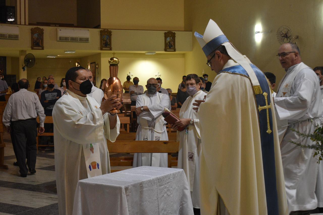 A ese Espíritu nos volvemos como Iglesia diocesana en esta Misa Crismal a las puertas de Pascua. Que Él nos conduzca también a nosotros, nos haga dóciles discípulos y aprendices del Evangelio, misioneros como el beato Esquiú, el santo Cura Brochero o la beata Mamá Antula, portadores de la Alegría del Evangelio para nuestros hermanos.